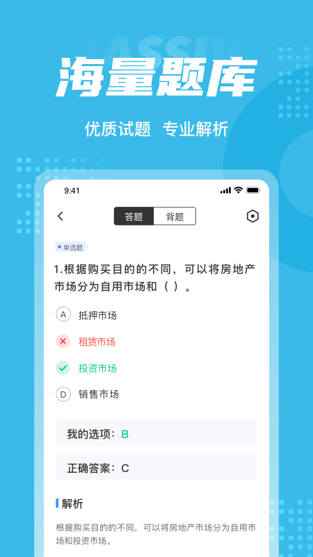 作为一款专注房地产经纪人协理考试的题库应用,整体体验扎实、好用、高效。题库质量高、解析到位、功能完整,能满足从基础练习到考前冲刺的全阶段需求。智能错题与学习分析能帮考生少走弯路,精准提分。界面清爽、操作顺手,长时间刷题不累赘。适合零基础、时间零散、自学能力一般的考生,也适合有基础想快速巩固的考生。没有浮夸宣传,靠实用功能与优质内容打动用户,是协理考试备考的可靠工具。坚持每日刷题、用好错题本,通关概率会明显提升。