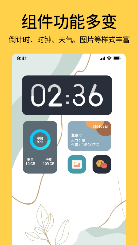 这个小工具占用内存很小,即使开启多个小组件,手机也能保持流畅运行。海量资源库提供了上千种主题和小组件样式,支持在线下载和随时更换,保证伙伴们的桌面永远紧跟潮流。安全与隐私保护也很到位,严格守护个人信息,让大伙用得安心。智能化推荐功能会根据使用习惯,智能推荐常用组件和主题,减少选择的烦恼。操作界面简洁明了,即使是新手也能快速上手,24小时客户服务及时解决疑问,确保使用无忧。