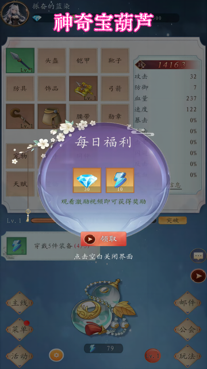 神奇宝葫芦是一款融合修仙题材与放置玩法的手机游戏,咱们将化身修真者开启奇妙冒险。核心设定围绕那只充满灵气的宝葫芦展开,只需要轻轻点击屏幕便能收获惊喜。剪影风格画面勾勒出云雾缭绕的仙山楼阁,配合悠扬的国风配乐,瞬间就能沉浸在这个充满东方韵味的幻想世界里。探索过程中会遇见各种灵兽伙伴,他们拥有独特天赋,能陪同咱们斩妖除魔。游戏特别设计了离线成长体系,即使暂时离开,角色也会持续修炼,随时回来都能见证道行精进。