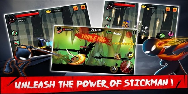 1.简洁明快的画面:游戏以黑色火柴人为主角,背景虽简单,但因动作设计细腻、场景效果逼真,使整个游戏界面看上去既简洁又不失精致。