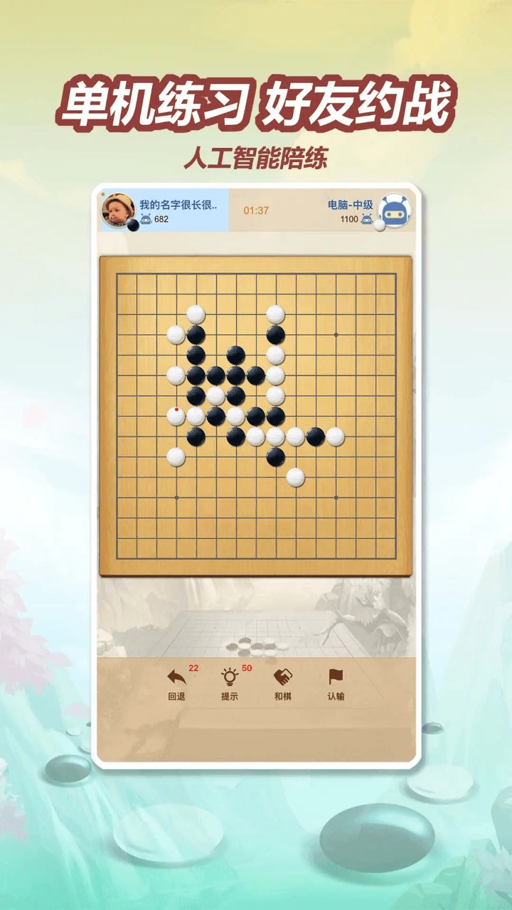 五林五子棋以传统五子棋规则为核心,在移动端打造出兼顾休闲与竞技的博弈体验。游戏没有复杂剧情,核心是黑白棋子在15×15棋盘上交替落子,率先在横、竖、斜任一方向连成五枚即获胜。日常打开就能快速开局,碎片时间可玩人机快棋,有空时也能参与真人匹配或专业赛事,从新手入门到棋艺精进都有对应内容,整体节奏由玩家自主掌控。