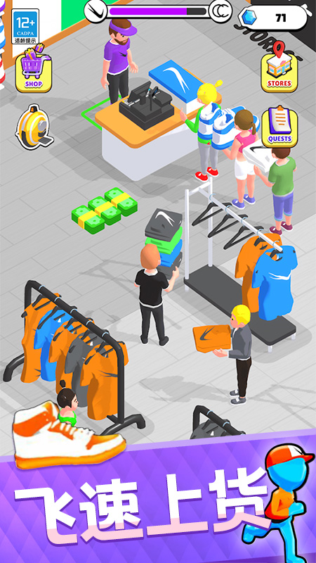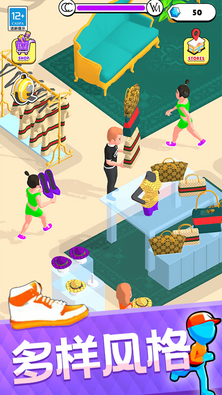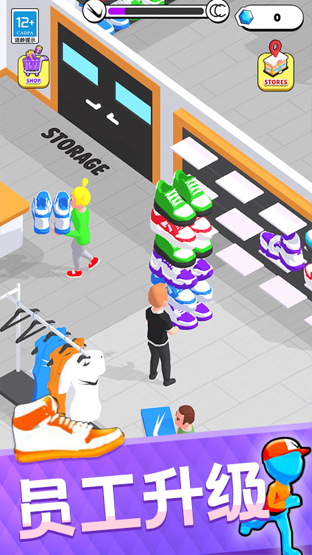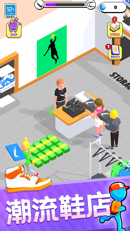 动态场景设计与物理反馈是最大亮点。跑酷赛道包含码头货轮、霓虹街区等创意机关,每双鞋子拥有独特属性,如高跟鞋擅长短途冲刺,运动鞋适应复杂地形。收集控会青睐成就系统,完成特定任务可解锁AJ、椰子等珍贵鞋款。经营模式的细节同样考究,例如培训员工提升结账效率或策划促销吸引客流。3D展示技术允许360度观赏鞋款细节,而智能设计助手则为新手提供实时建议,降低入门门槛。
