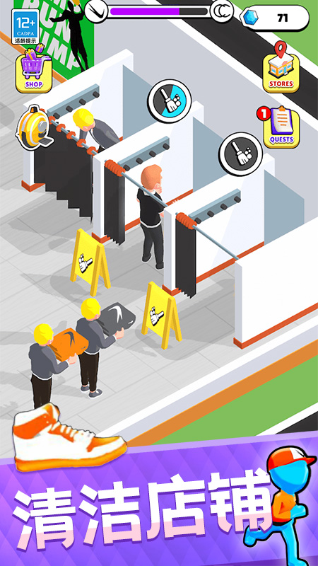 在跑酷模式中,玩家需操控角色穿越城市街头、码头等动态场景,灵活躲避船只、陷阱等障碍,收集散落的潮鞋以扩充陈列室。随着收藏增多,可解锁限定款式或升级展厅规模。经营玩法则允许玩家扮演店主,从进货、员工管理到定价策略均需亲力亲为,通过任务逐步扩大商业版图。游戏还设有洞洞鞋挑战赛、限时破洞比赛等特殊活动,获胜后可获得稀有奖励。跑酷与经营的双重机制为玩家提供了多元化的体验。