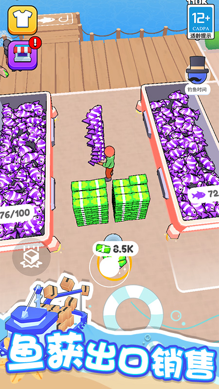 咱们的冒险从捕鱼卖海鲜开始——升级渔船、解锁高级渔具,捕捞稀有鱼获赚取第一桶金。钞票积累,港口地图逐步展开:开寿司店研发新菜谱,建市场交易稀缺物资,甚至打造地标建筑吸引游客。忙不过来?雇佣员工分担工作!从卖鱼小哥到寿司大厨,合理分配岗位能让产业运转更高效。后期还能解锁飞行模式,俯瞰亲手规划的滨海商业帝国,超有成就感。