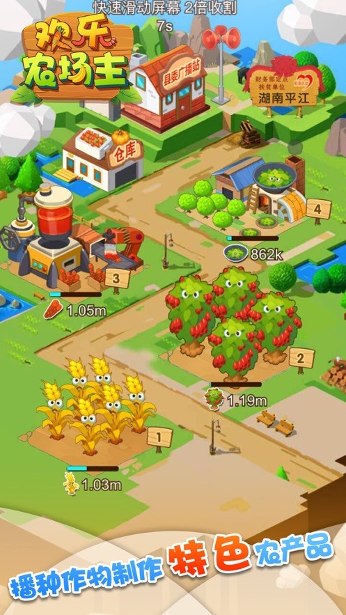 这是一款充满田园风情的模拟经营类手机游戏,你可以扮演农场主,从零开始打造属于自己的农业帝国。背景设定在风景如画的虚拟乡村,通过种植作物、饲养动物、加工农产品等方式逐步扩大农场规模。画面采用精致的卡通风格,搭配轻松愉悦的背景音乐,营造出舒适放松的游戏氛围,无论你喜欢策略经营还是休闲体验都能找到乐趣。