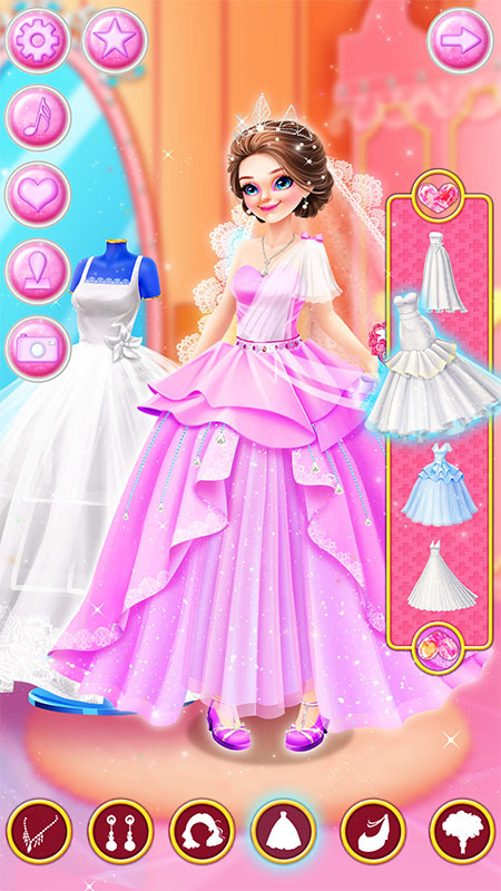这里的新娘装扮可不是简单的换装游戏!你能体验真实婚礼策划的全流程:先选好婚纱和西装,再用卷发棒做发型,接着用糖霜装饰三层婚礼蛋糕,最后还要给邀请函贴上小爱心。最惊喜的是拍照环节——摆好姿势后能选择泡泡、彩虹等特效,拍完照会自动生成时尚杂志封面。游戏还会根据搭配给出评分,比如梦幻精灵+5分、公主气场全开+10分,让人超有成就感。