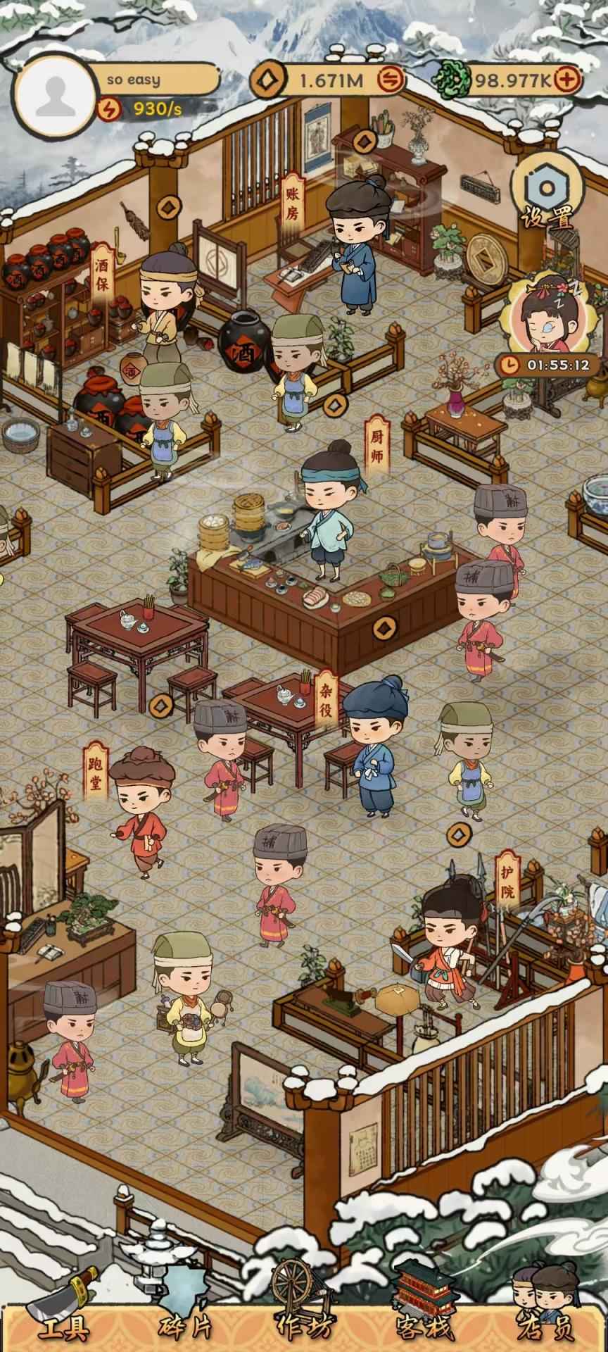 江湖过客的设计让每个角色活灵活现,互动中解锁丰富剧情,比如侠客吐露恩怨或书生遗留信件,增添了人情味。多元玩法包括策略性的资源管理和员工培养,任务系统结合主线与支线,逐步揭示隐藏故事。季节更替带来独特景观和事件,比如大雪导致旅客滞留,考验应变能力,而社交互动让我们能与其他掌柜交流合作,分享资源与经验。古风美学贯穿始终,从建筑风格到音乐细节,都营造出沉浸式的文化氛围。