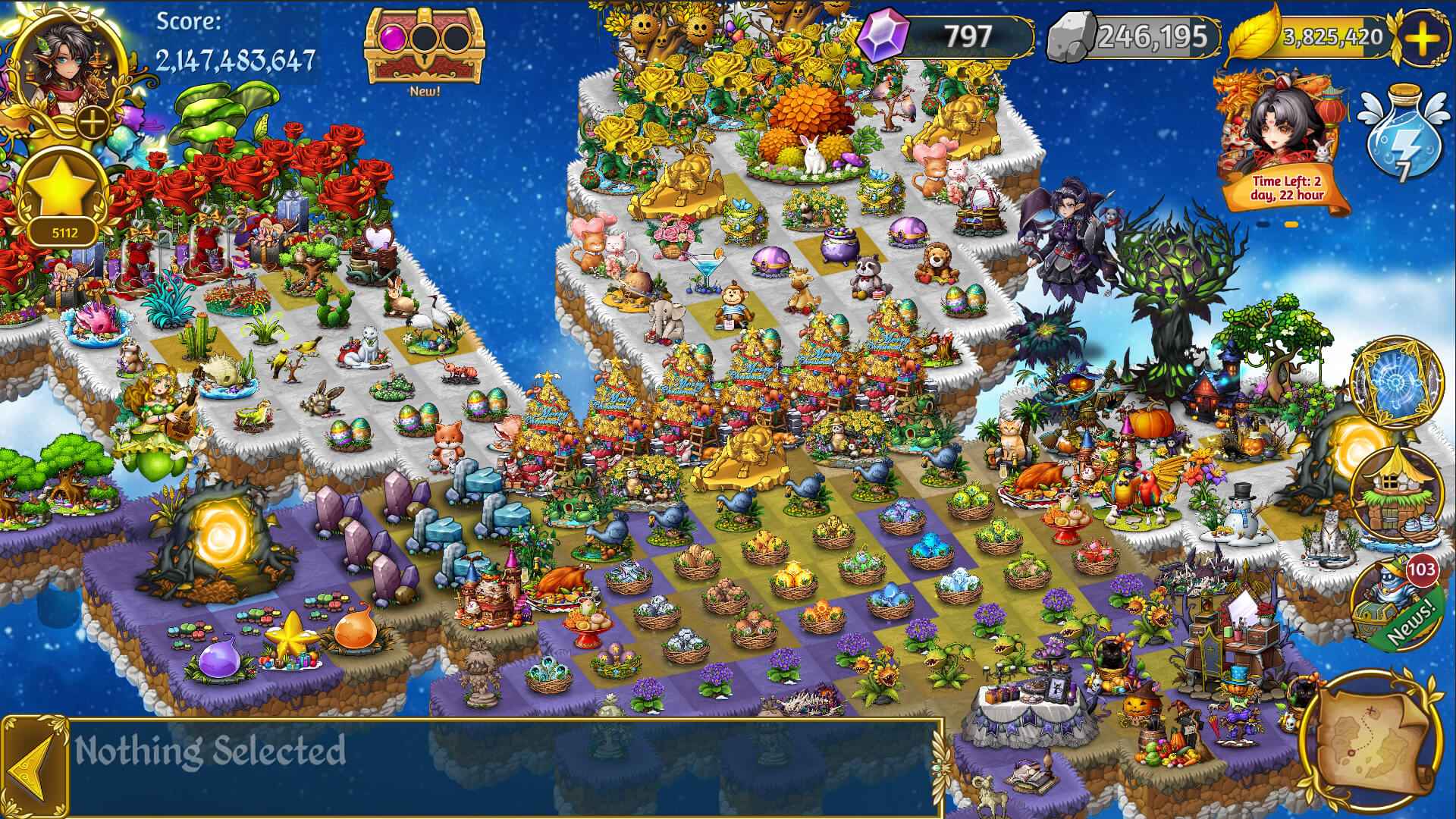 创新合成系统通过五次连续合成触发额外奖励,优化资源管理;天气联动机制如雨天促进作物发育,极光之夜提升攻击力,利用环境因素扭转战局;每日惊喜通过女王日历功能,登录领取限定精灵蛋或建筑蓝图,连续七天获取传奇装备;安全防护采用实时自动保存与手动备份,杜绝进度丢失焦虑。精灵收集与进化涵盖100余种可爱生物,每只拥有独特技能与背景故事,升级后可组建强力战队。资源管理部分引入金叶系统,合理投资于熊猫祭坛、星盘等设施,获得持久回报。社区互动支持加入部落,激活资源共享增益,协作探索隐藏内容。