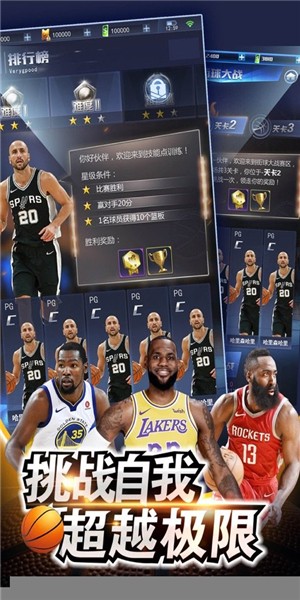 王者美职篮是一款NBA官方授权的篮球策略手游,主打真实数据同步和深度策略玩法。游戏完美还原了NBA赛场氛围,玩家可以扮演球队经理,通过选秀、交易、培养球员等方式打造专属梦之队。所有现役球员能力值会随现实NBA比赛每日更新,让游戏体验始终紧跟真实赛场动态。
