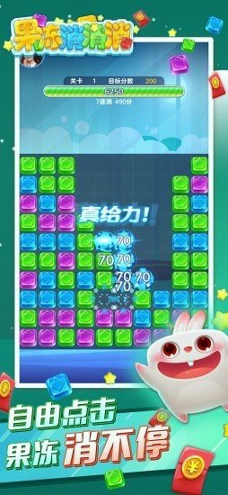 2.游戏的操作非常直观,玩家只需要用手指滑动屏幕,将三个或三个以上相同颜色的果冻连接在一起即可消除并获得分数。随着连击数的增加,玩家还可以得到额外的分数奖励,激发玩家挑战更高分数的热情。