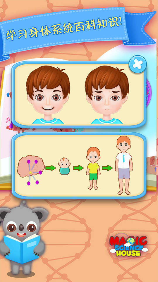 在天才宝宝学习身体游戏中,孩子们将跟随主角一起探索人体奥秘。游戏分为多个关卡,每个关卡都聚焦于人体的一个特定部分,如头部、躯干、手脚等。通过解决关卡中的各种谜题,宝宝不仅能够熟悉人体各部位的名称,还能了解它们的基本功能和重要性。游戏还设有随机小测试,以复习和巩固孩子们所学的知识。