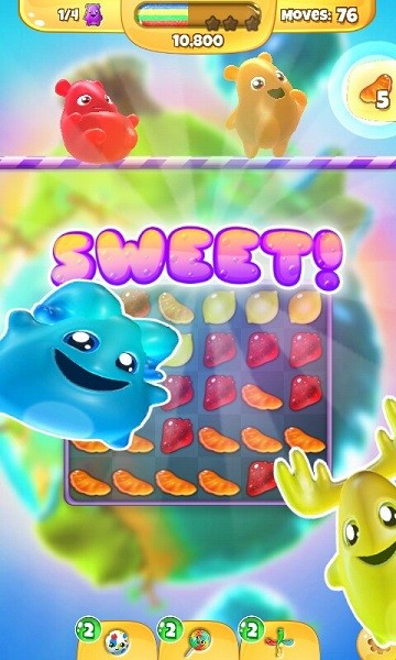 4.美轮美奂的画面效果:游戏采用高清的画面设计,每一颗软糖都色彩鲜亮,搭配轻快的背景音乐,让玩家仿佛真的置身于一个甜蜜的奇幻世界中。